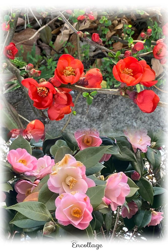 ②木瓜とツバキ