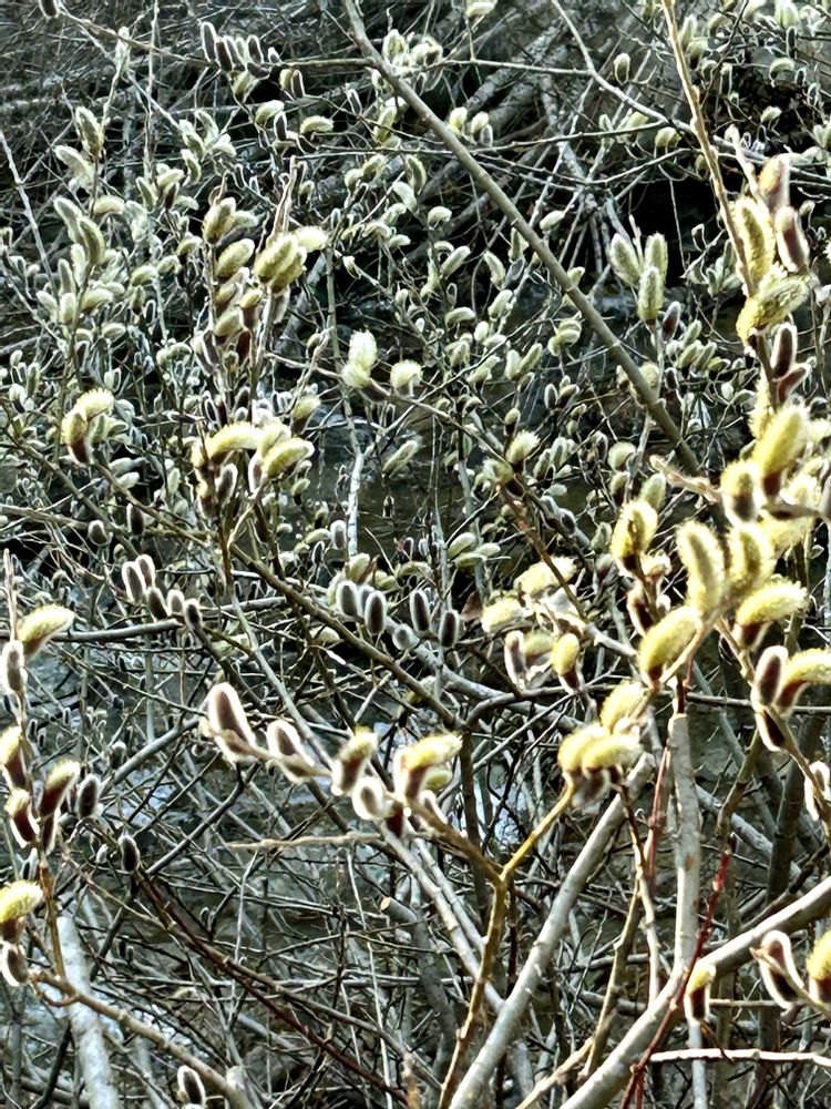 3️⃣4️⃣花粉のついたネコヤナギは金色に、まだ毛の中のネコヤナギは銀色に、夕日に照らされて綺麗な景色でした