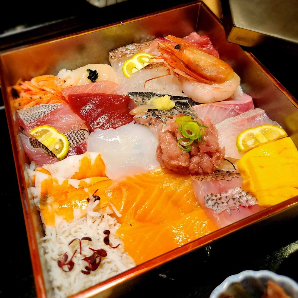 お昼に頂いた限定5食の玉手箱寿し🍣