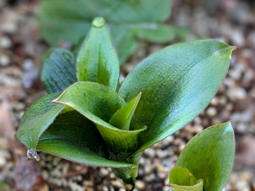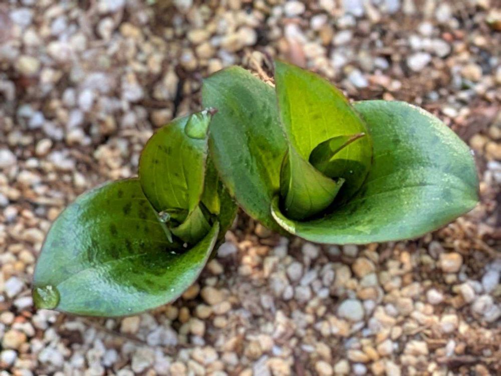 デッキの鉢植えに2年目の杜鵑草が