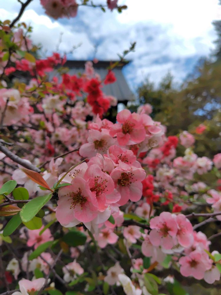 ①なんとも優しげな木瓜のお花(昨年カタクリの里で)