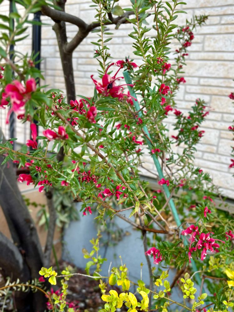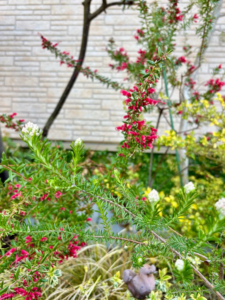 花壇ではグレビレア・ラニゲラが咲き始めました