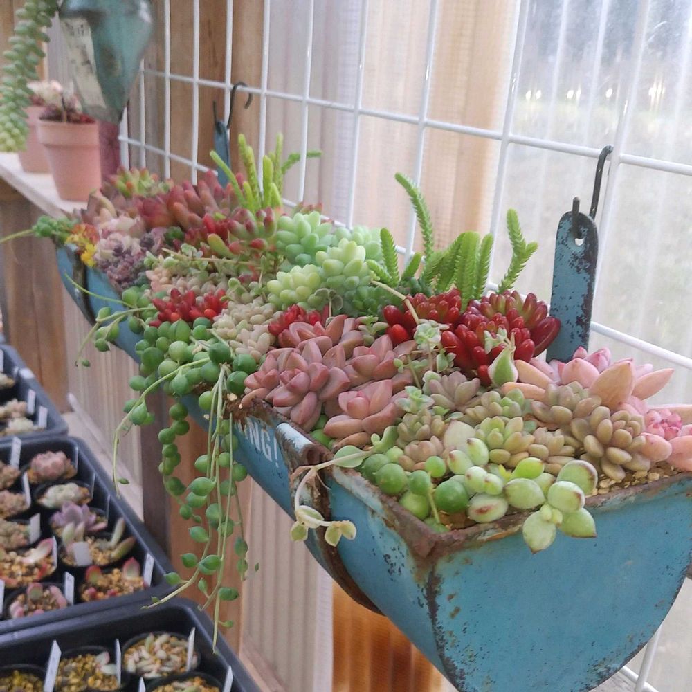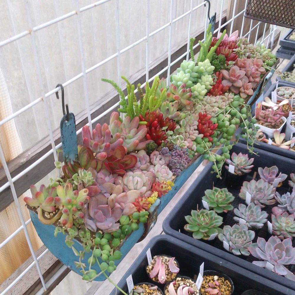 それにしても長い鉢にたくさんの多肉をバランス良く植えられていますね☺️
