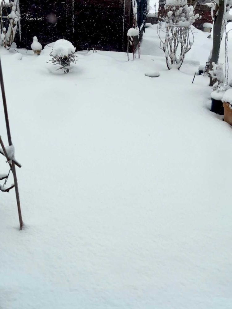 今は物置の手前の花壇に少し❄️残っているくらいです🎶