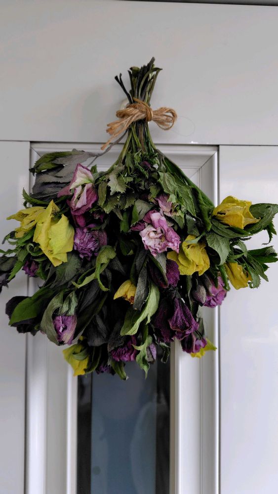 ドライフラワーのスワッグにしました😉もう少し楽しませてもらいましょ😆人使い、いや、花使いが荒い😂🤣