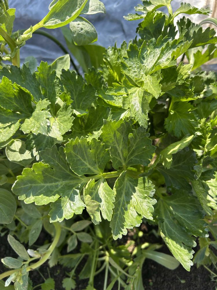 ビニールトンネルを開けて見たら草ボーボーの中に空豆とセロリが大きく育っていました🥰🥰