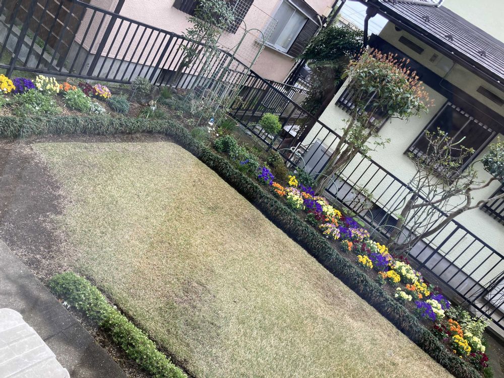 芝の手入れ中🎶