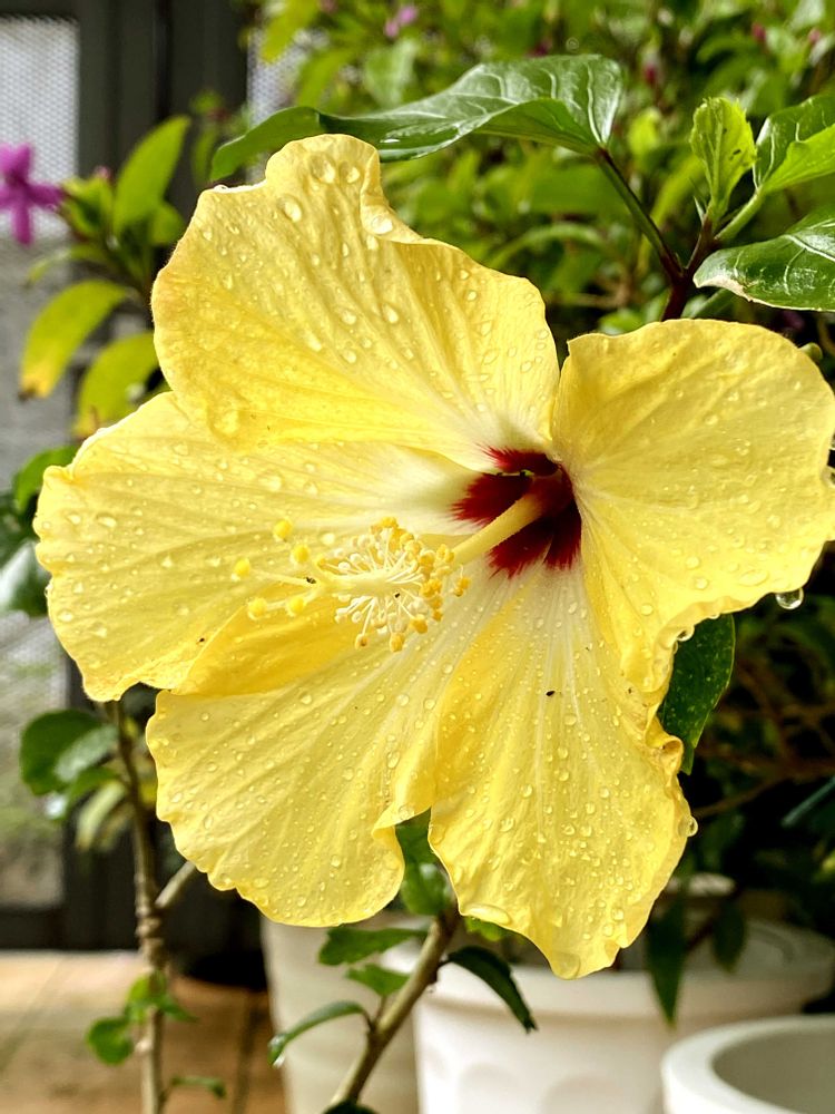 我が家の美人ハイビスカスさんです🌿💛🌿もう一鉢にはつぼみが膨らみはじめていますね😳 ウレシイ〰️😍