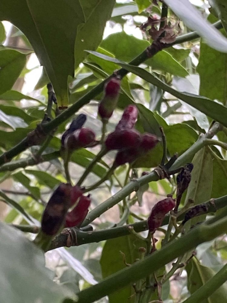 去年出来た実やこれから咲く蕾など全世代のアオキが見られました〜