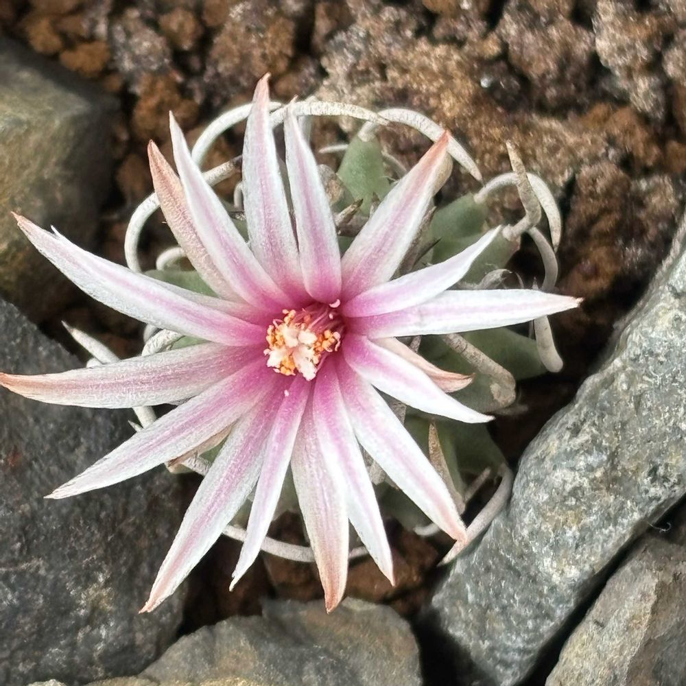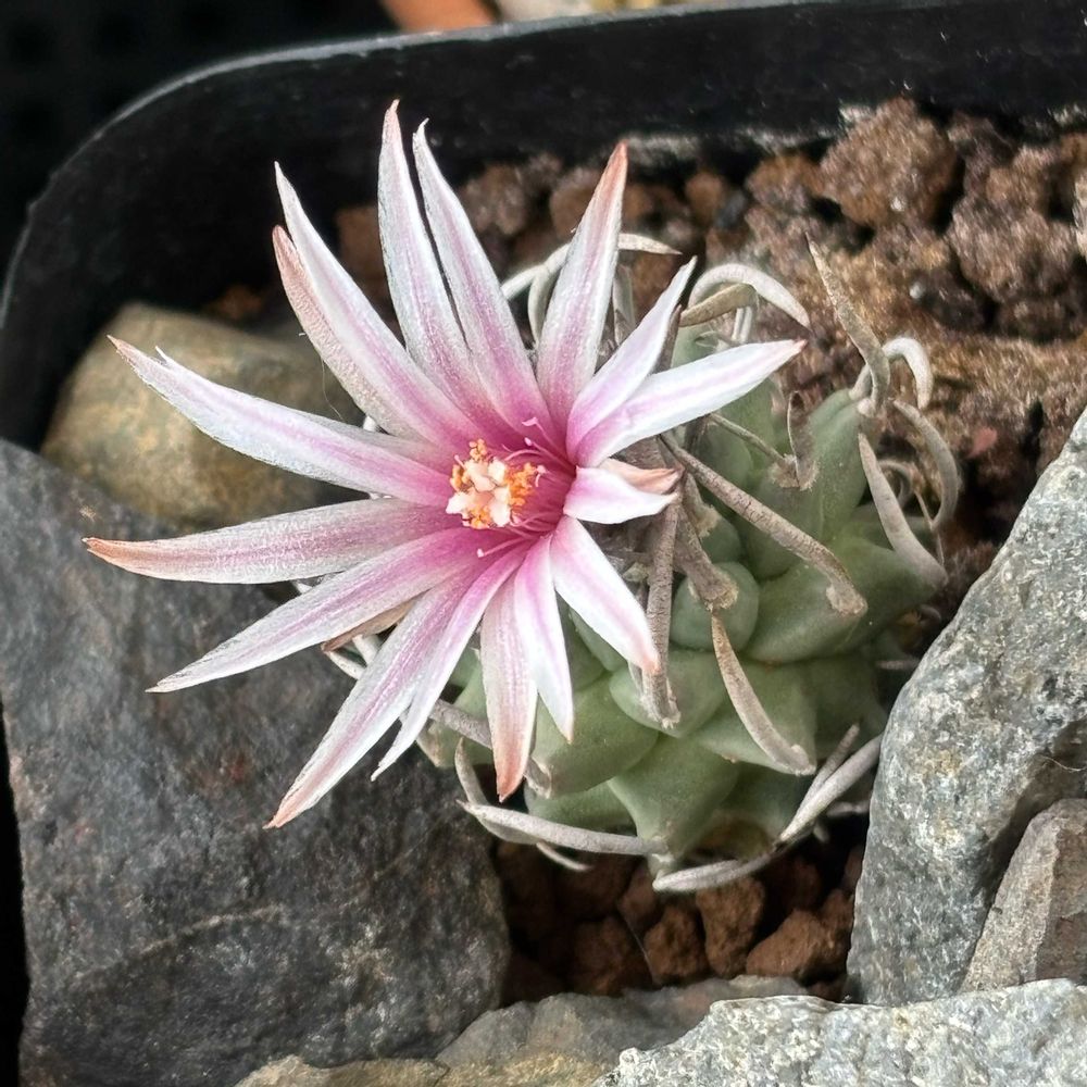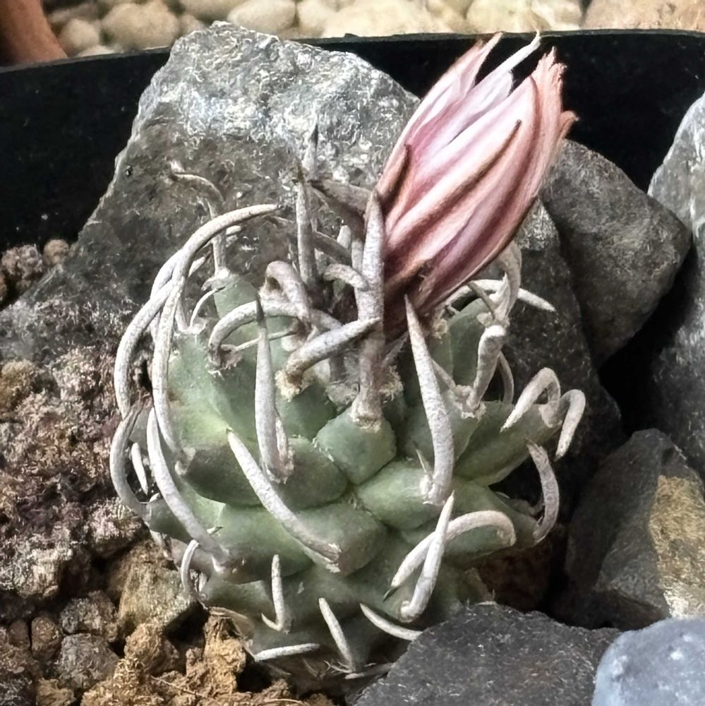 ツルビニカルプス 咲きました 水やりをしっかりしたら トゲのホールドが少し緩みふっくらしたようです