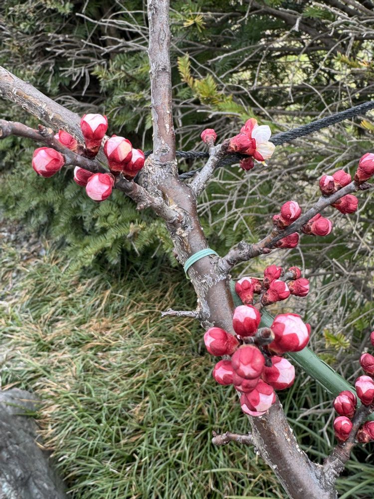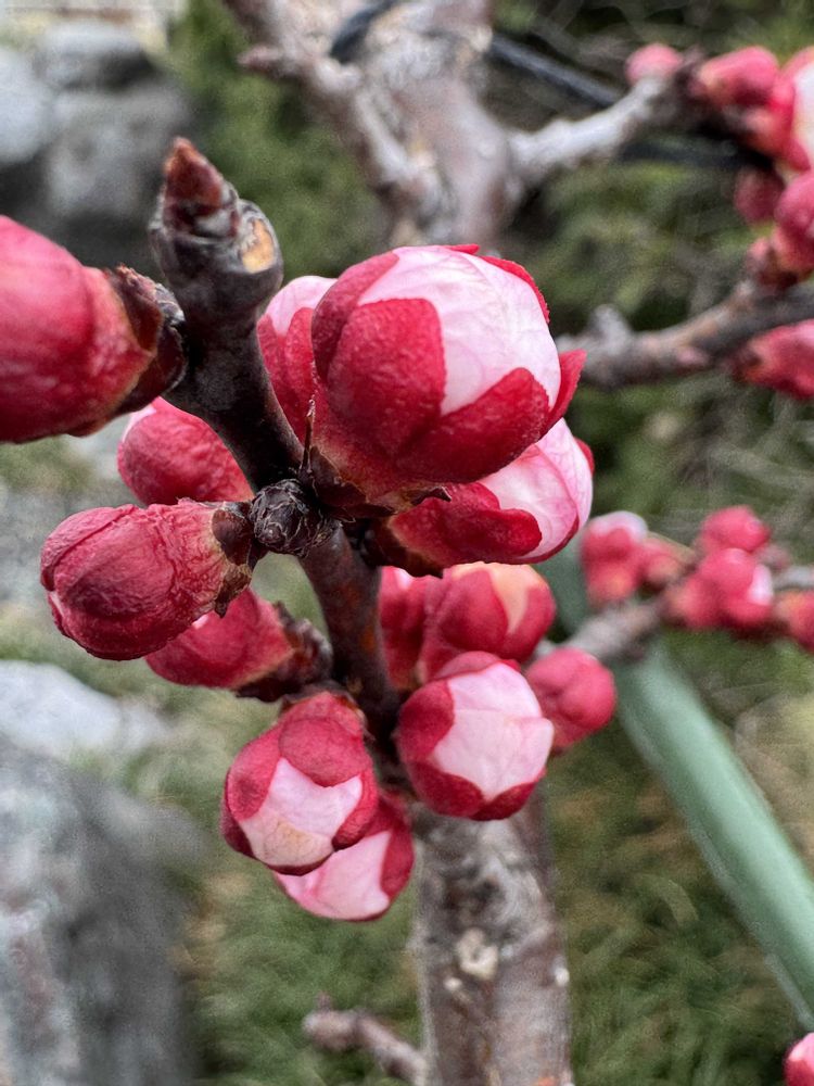 さっき庭の木を見て来たのですが…かつて実を付けた(家族の中ではネクタリン)老木ながらに今年も蕾が沢山でした😊もう3年位結実には至らず…栄養付けさせようと思っても何だか周りの草が元気になるばかりなので様子だけ見ています♡