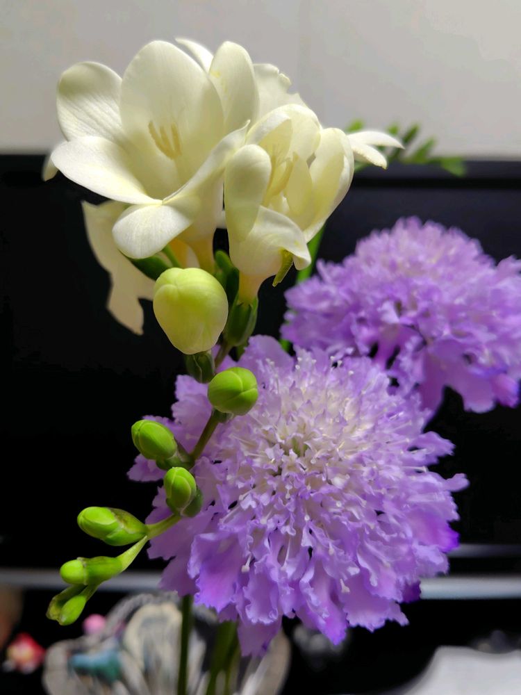 どちらも大輪のフリージアです…近くのイケメン君のお花屋さんで買いました〜😉