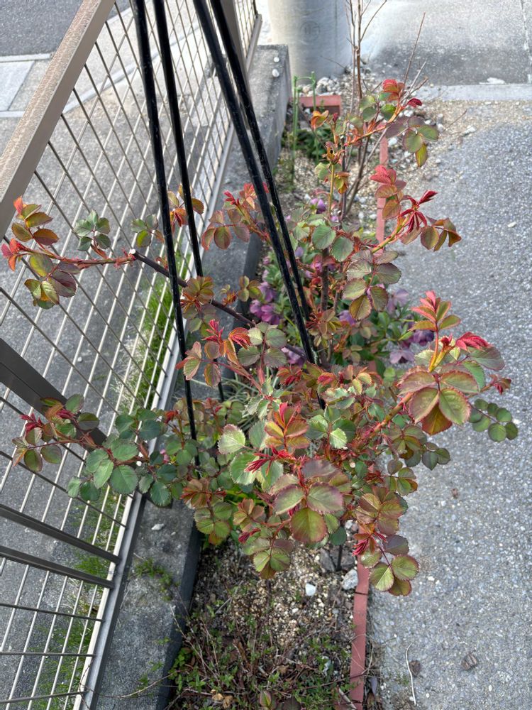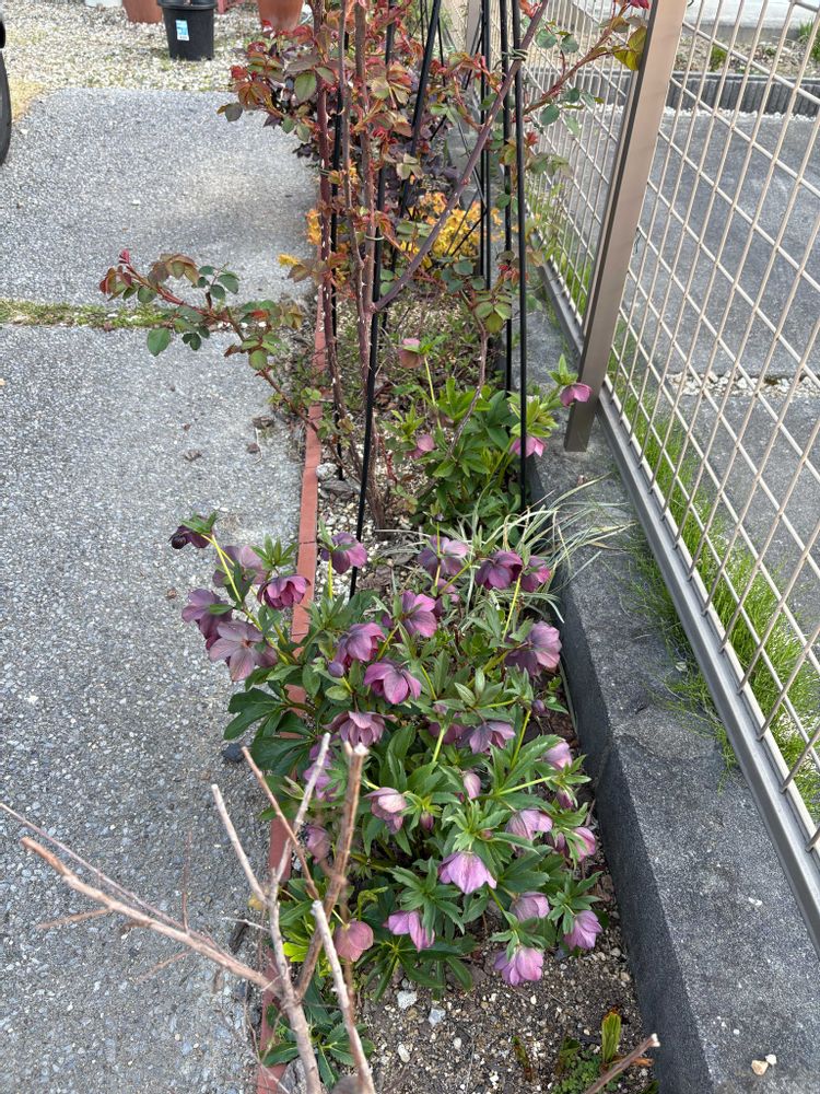 ①②③クリスマスローズとバラの新芽