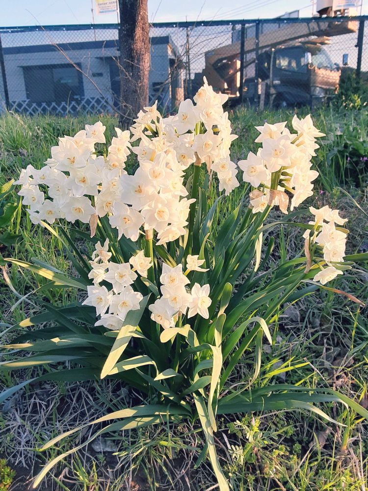 ①②道端のサクラとスイセン、③④卒業式のお花、⑤いつもなら満開のモクレンも既に散り始めました。掃除が大変だ…