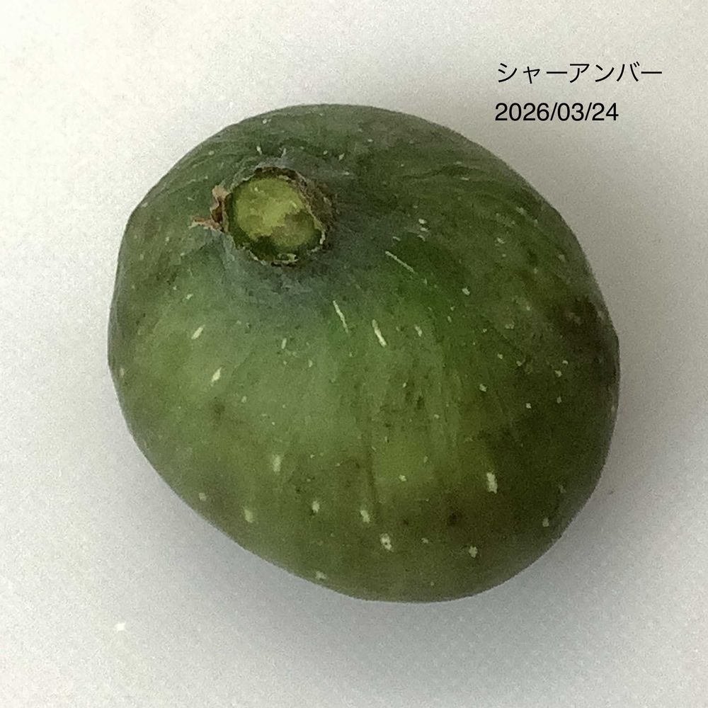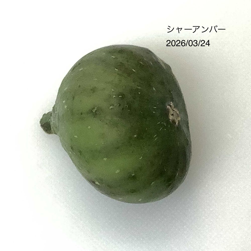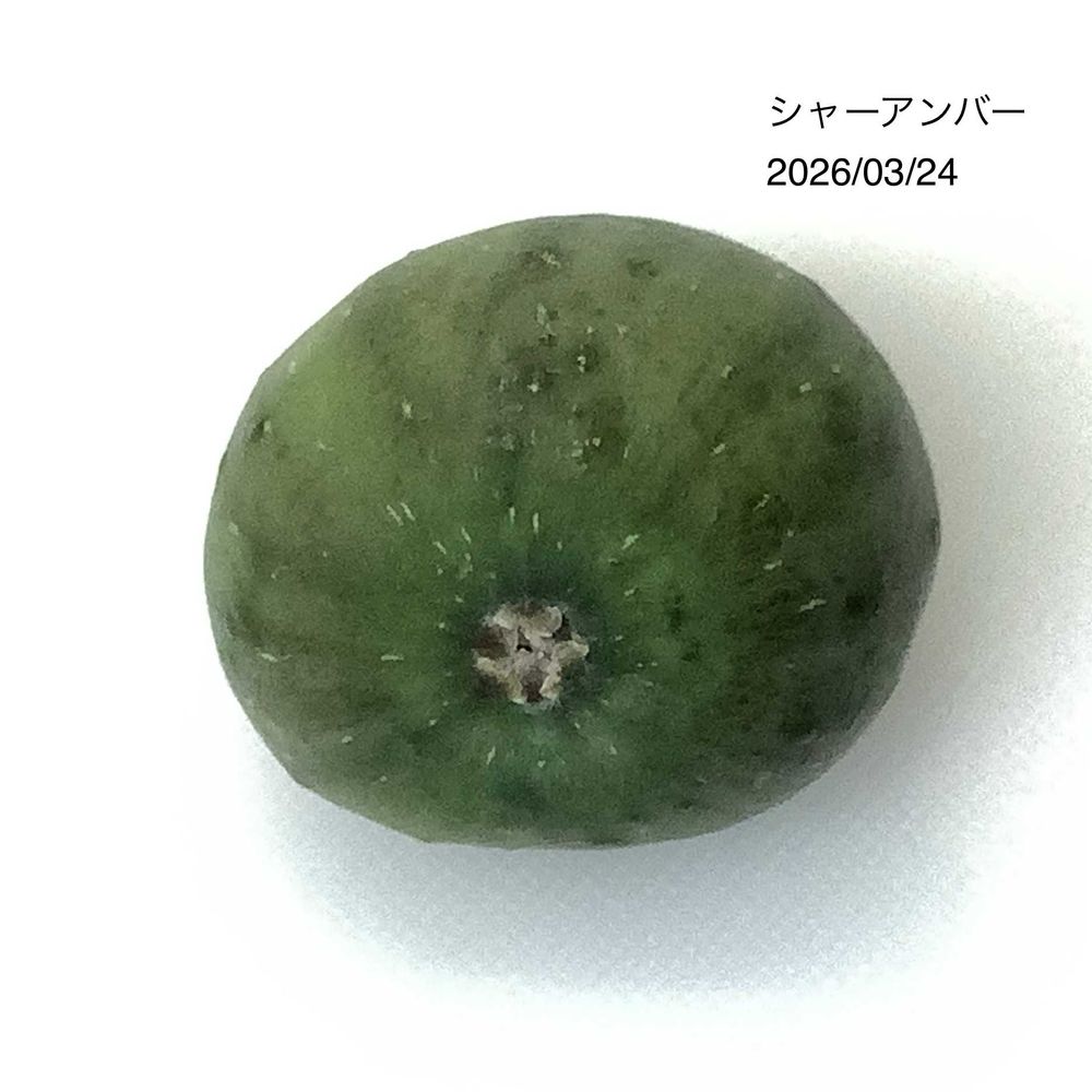 去年伸びた枝に残っていた最後の果実が果梗近くまで軟らかくなって来たので採りました 「シャーアンバー」の3つ目の秋果です