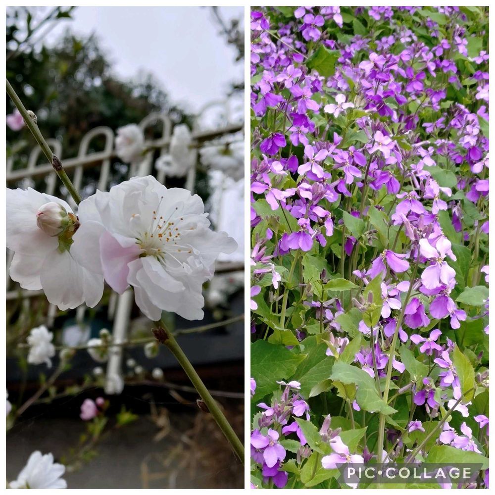 小山市を流れる思川の土手に咲く思川桜と菜の花です