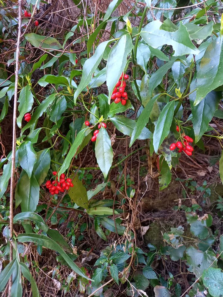 友達と春登山をした時 アオキの赤い実があちこちで見られました。もうすぐ花もさきますので、実と花が同時に見れます。