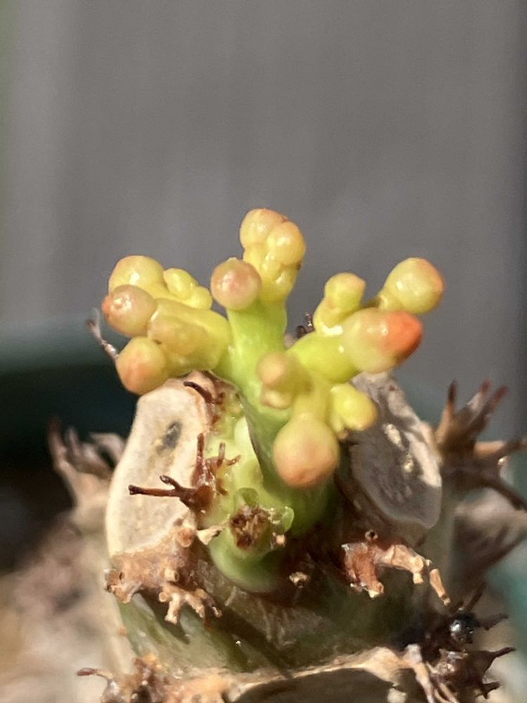 2025年4月にネットでたにたのさんの苗を購入した時におまけでついてきた名無しのエケベリアが面白く育っているので、成長記録を作りました。 この子の名前ご存知でしたら、ぜひ教えてください🙏