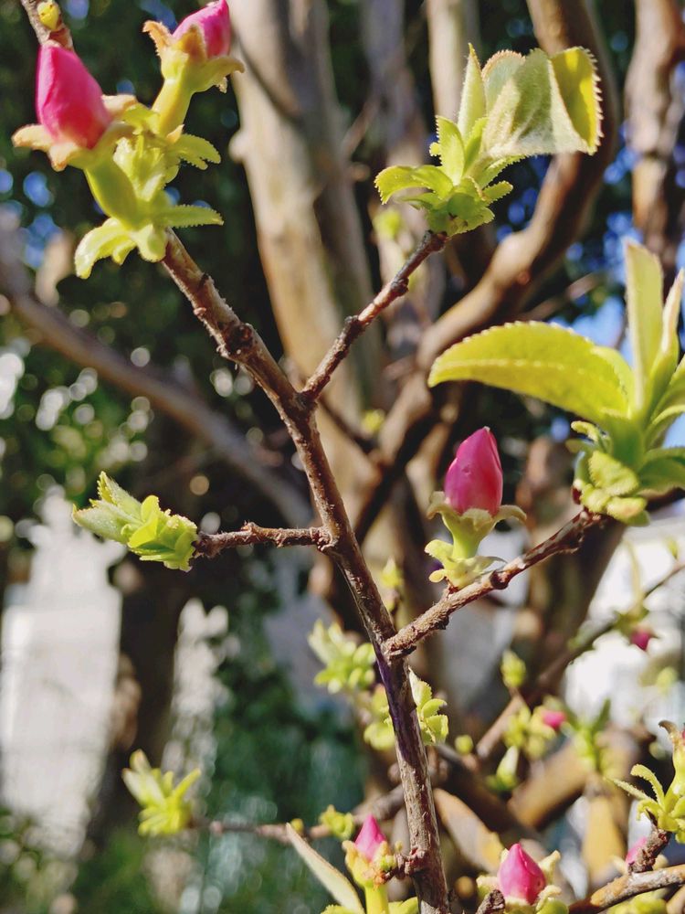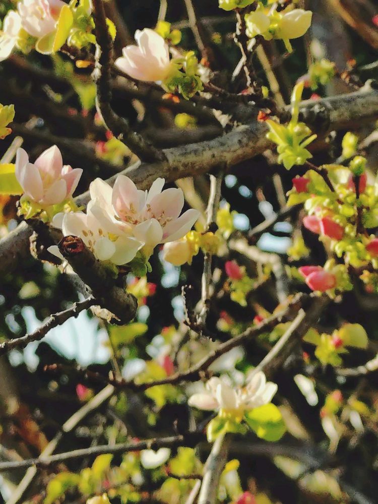 ①②カリンの花が咲き始めてきてました🩷 蕾の時は赤色なんですね♥️