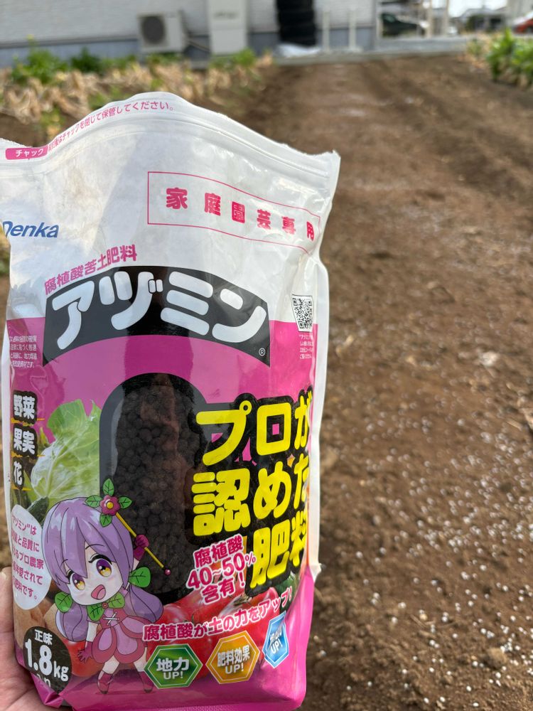 畑の土にはモニター当選したアヅミンを混ぜてみました。化成肥料と