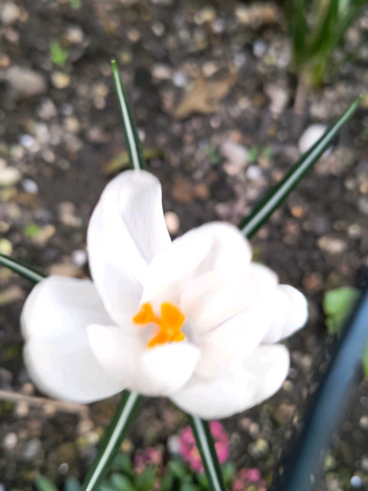 ①クロッカスの白が咲いてくれました。黄色よりも花が大きくて結構差が出るんだなぁと感心