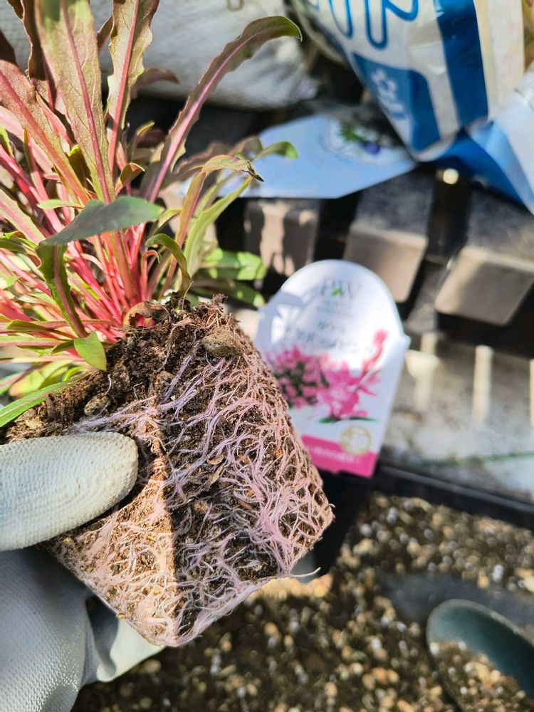②PWのガウラ買っちゃいました🥰植え替えでポットから抜いたら根がピンク色⁉️