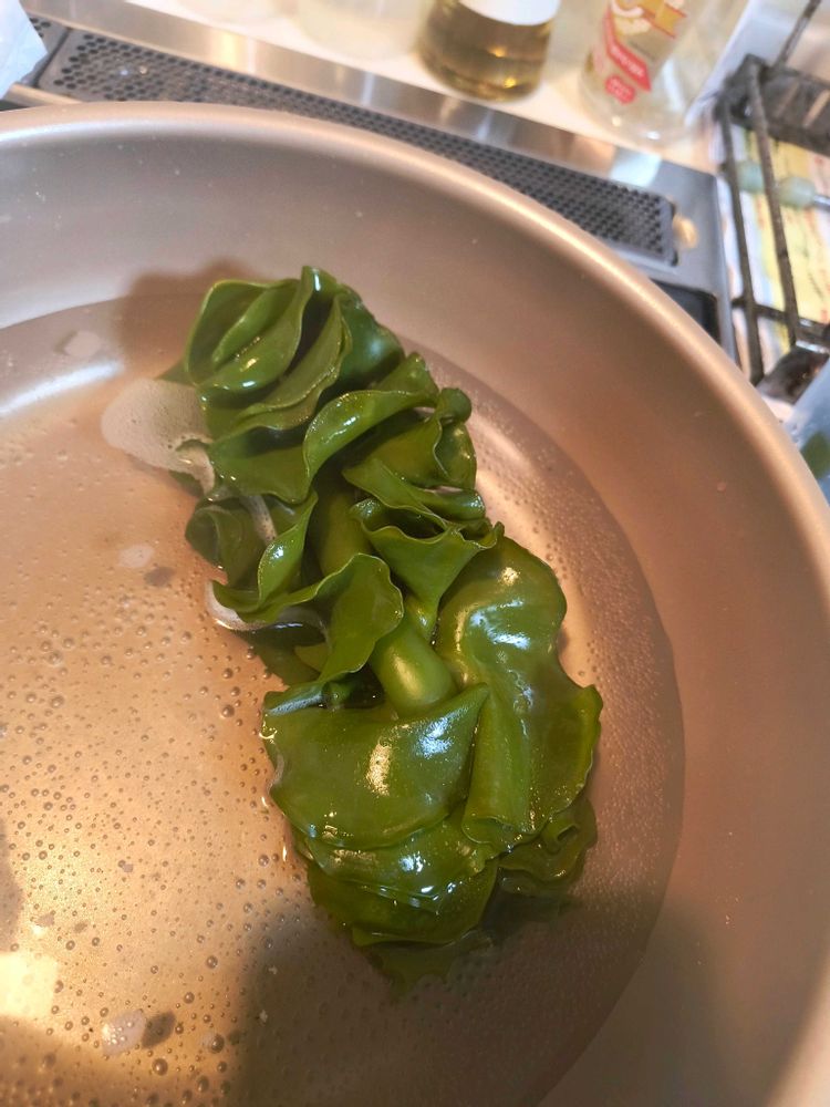 ③頂き物で採りたての生わかめをいただいたのですがストリングポテトみたいな部分がついててどうしたものかと🤔とりあえず茹でておつまみ用の茎わかめを作ってみました!美味しい🥰