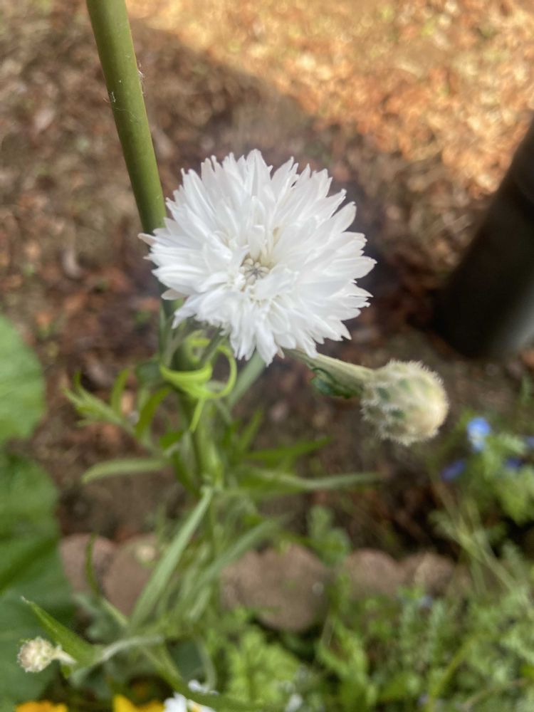 矢車菊開花第一号🥰最初雑草かと思って引き抜こうかと思ったわ💦