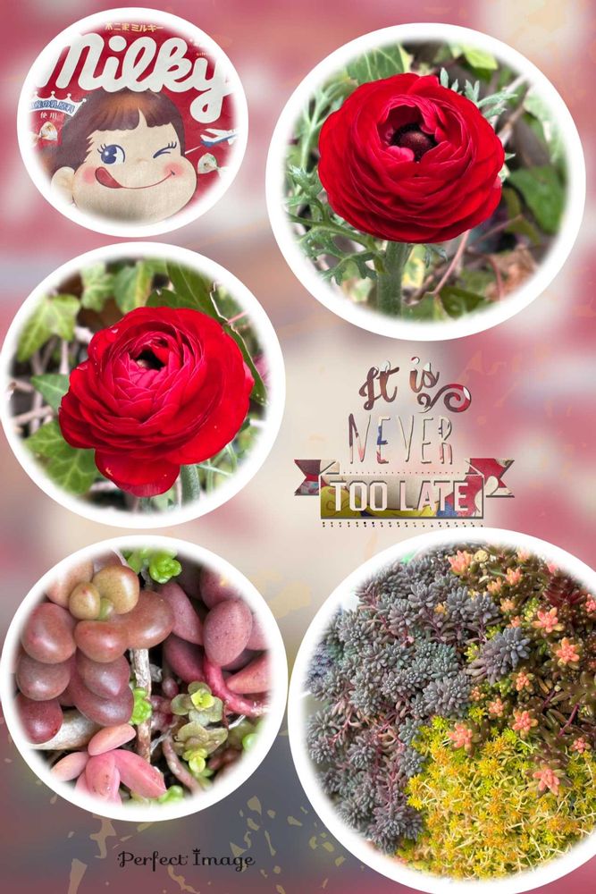 わが家のラナンキュラスと、セダムたちの共演でした〜