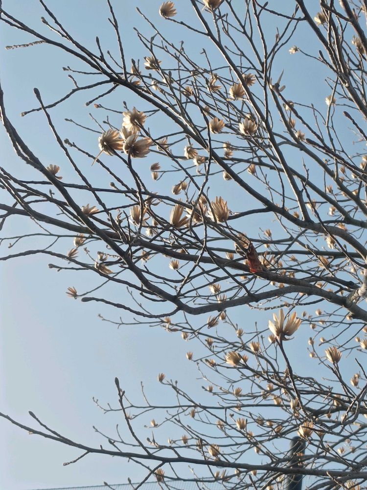 大きなユリノキの枝先には、実だけが残ってました。
