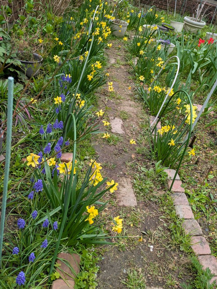 今年はミニ水仙ティタティタ💛とムスカリ💜でお庭に可愛い小径が出来てるネ🥰