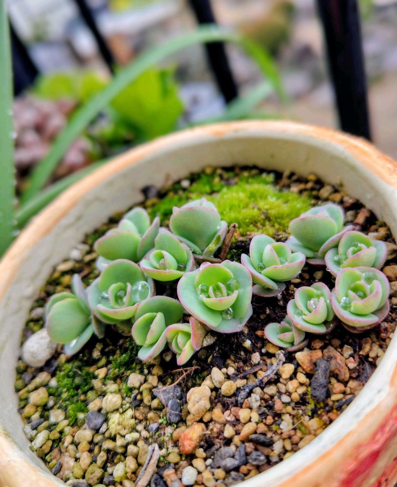 しかし苔生えるくらい湿度あんのに新芽ギュンギュンな多肉