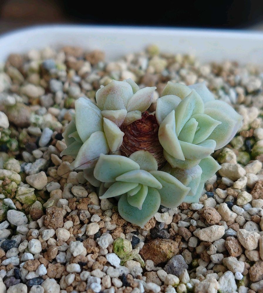 2025年4月にネットでたにたのさんの苗を購入した時におまけでついてきた名無しのエケベリアが面白く育っているので、成長記録を作りました。 この子の名前ご存知でしたら、ぜひ教えてください🙏