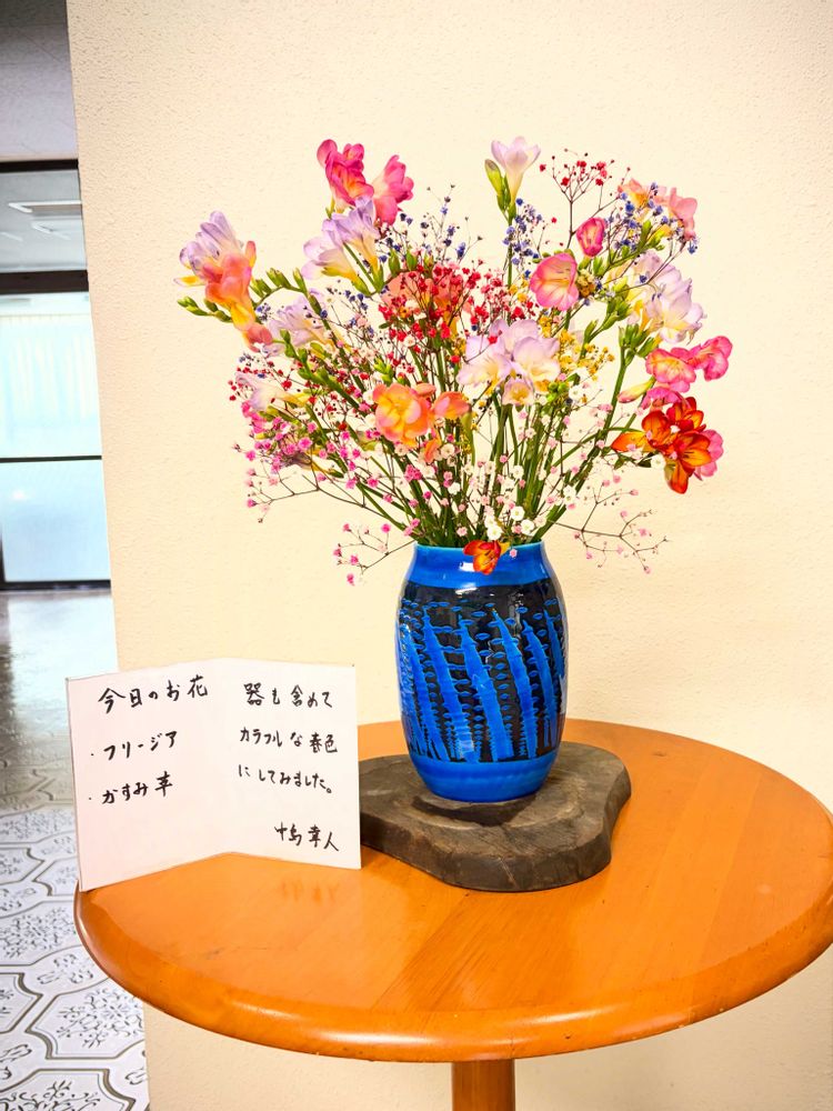 3月の生け込み 器は空色 花は虹色に♪