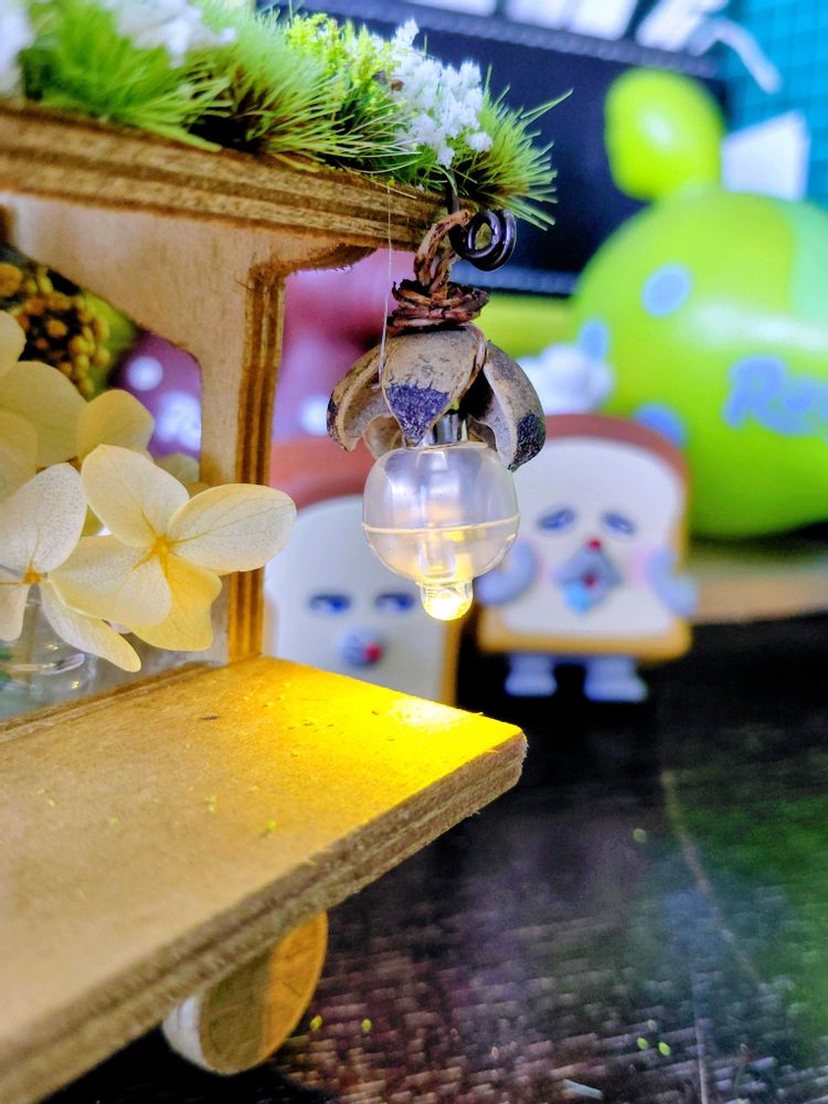 硬いドライフラワーにライトも付けてみた。