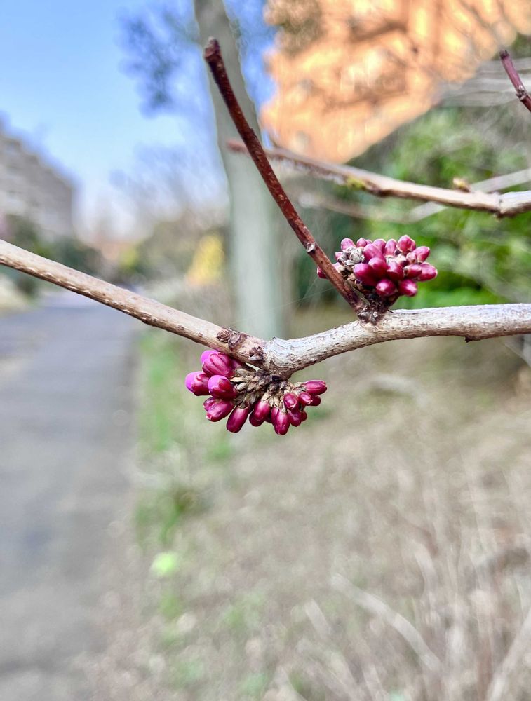 昨日のお散歩で花蘇芳の蕾を発見👀もうすぐ咲きそうです☺️