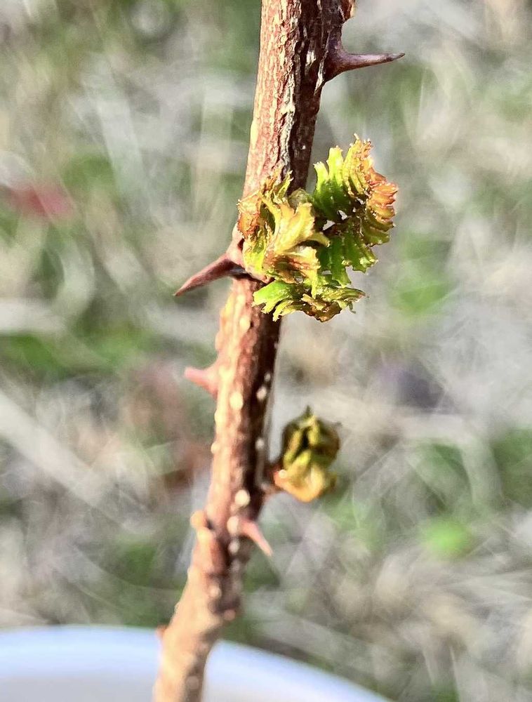 外壁工事中なので少し離れた所へ移動中の自宅の植物たちなのですが…鉢植えのサンショウにも可愛い新芽が出てきていました🌱👀
