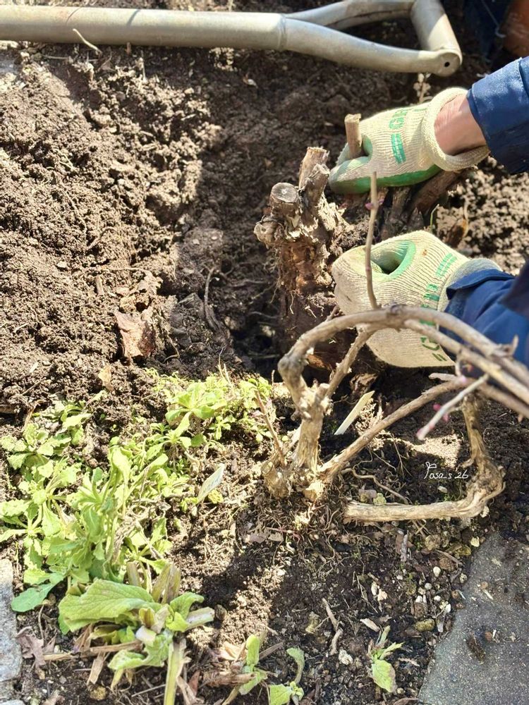 先に枝を切ってから剣先スコップとテコの原理で掘っていましたがなかなかに重労働💦