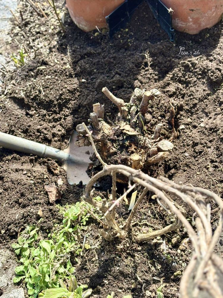 そこでブドウ🍇の成長と共に手狭になった修景バラのバニラボニカを移植する事にしました☺️