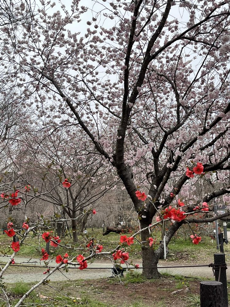 細井桜🌸と木瓜❤️なんて面白い共演も見ることができました😄