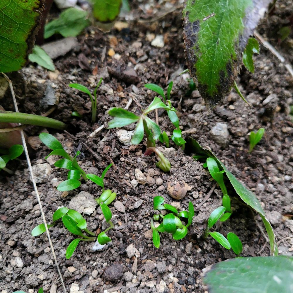 ふと葉っぱをめくってみたら🌱🌱🌱🌱🌱沢山芽が❣、これってクリスマスローズのこぼれ種ですか?