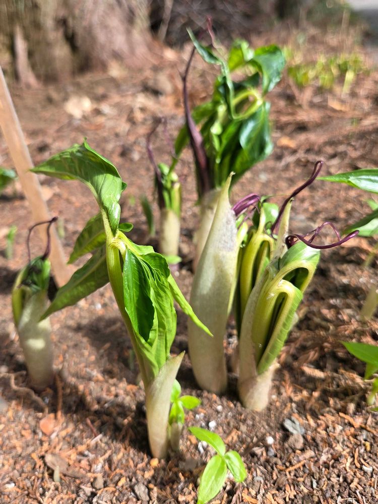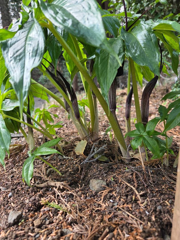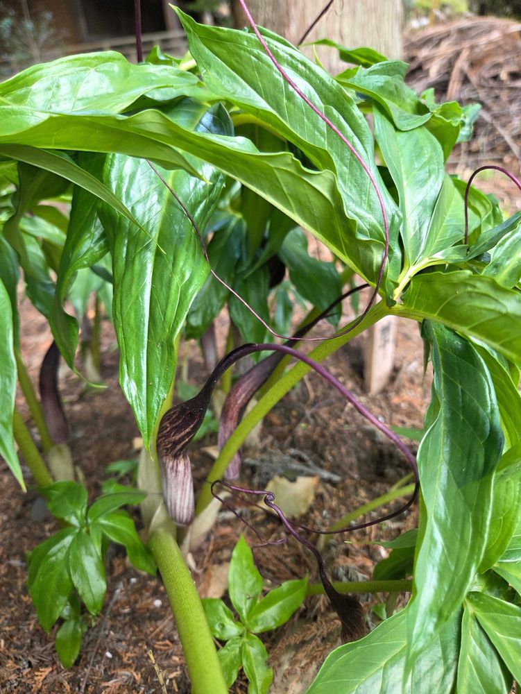 3月2日に芽吹いてきたウラシマソウ、1ヶ月もしないうちにお花が開きました。