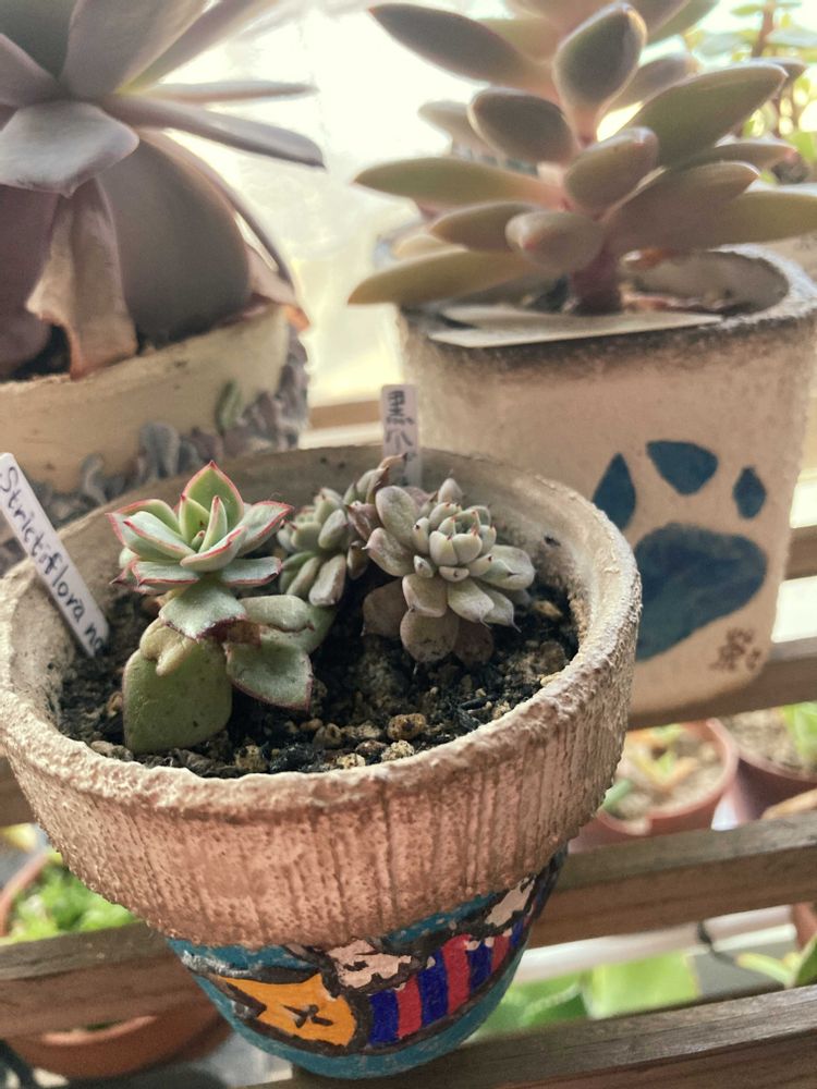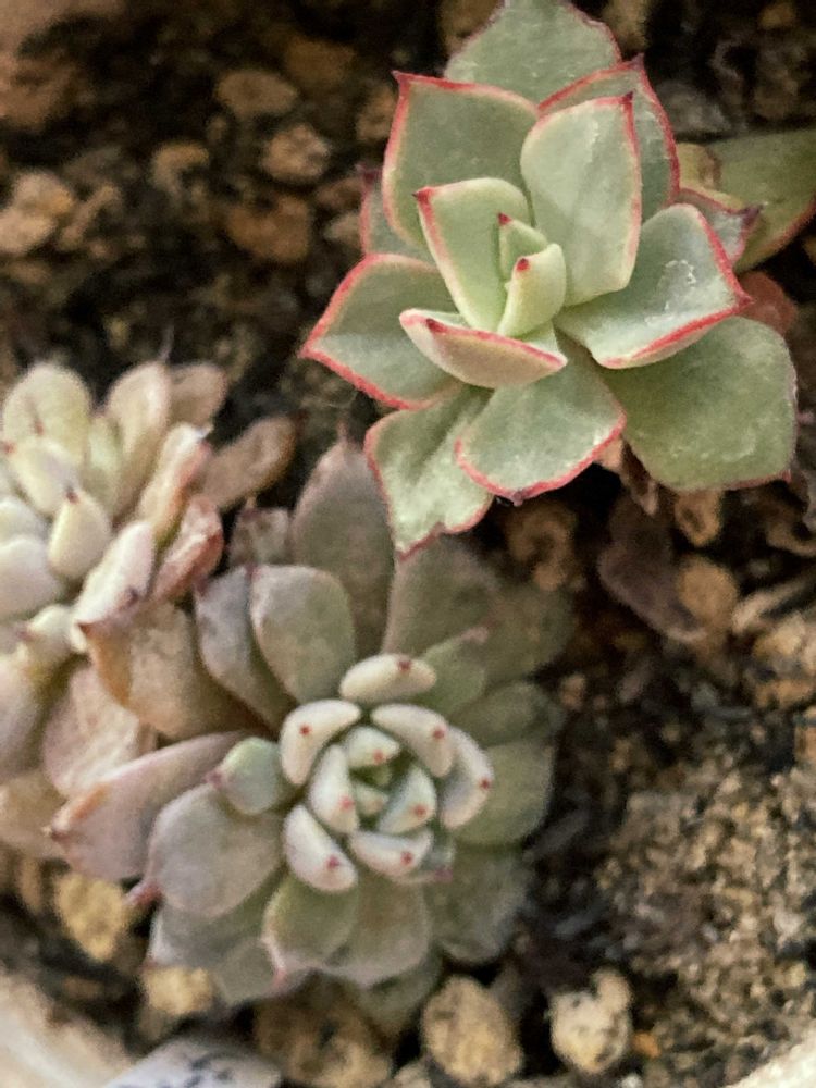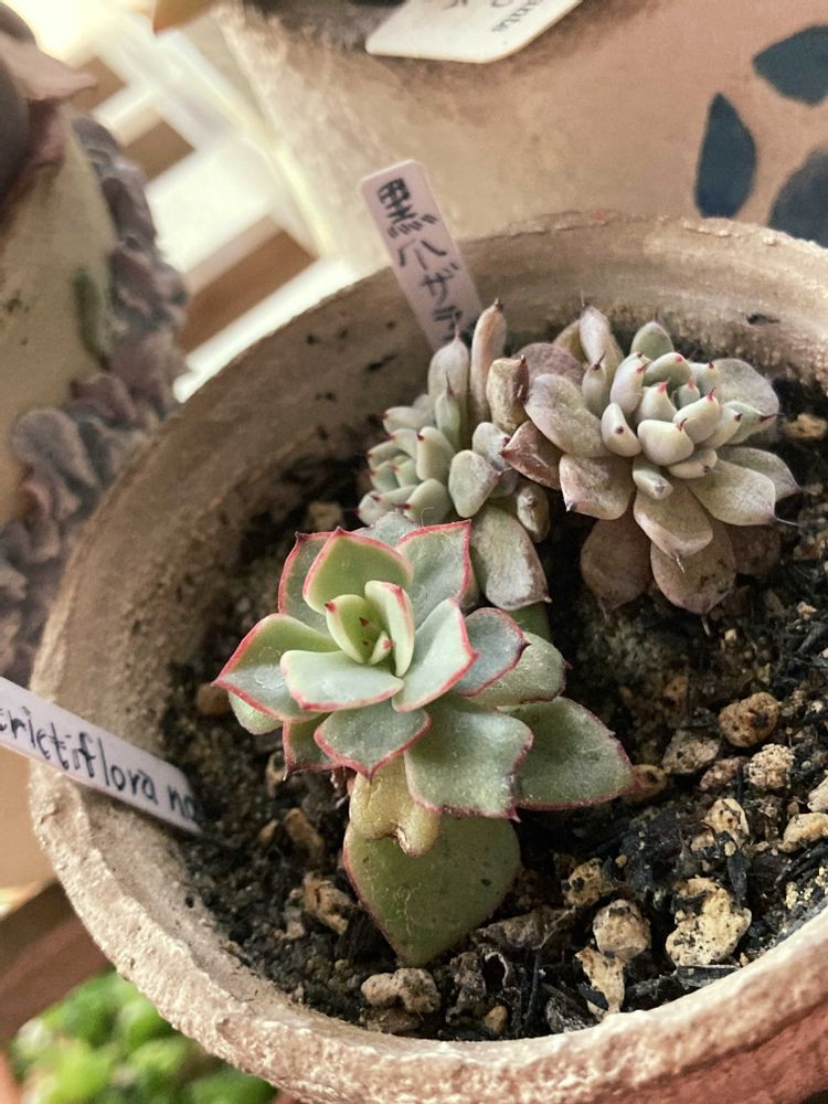 2025年4月にネットでたにたのさんの苗を購入した時におまけでついてきた名無しのエケベリアが面白く育っているので、成長記録を作りました。 この子の名前ご存知でしたら、ぜひ教えてください🙏