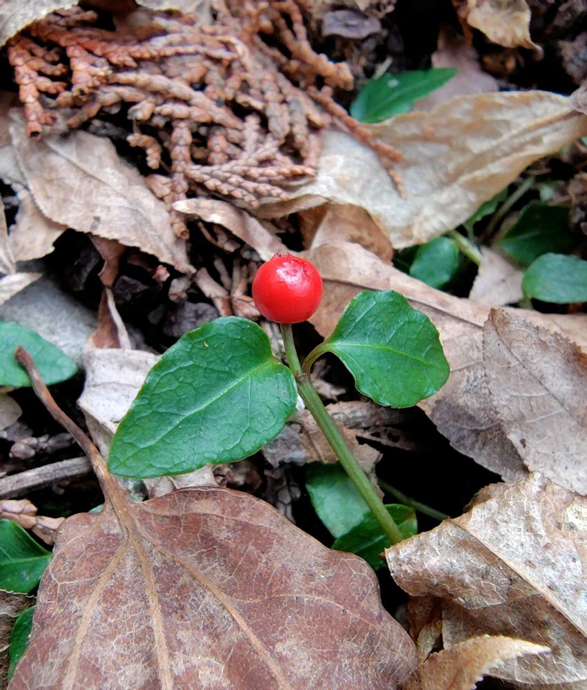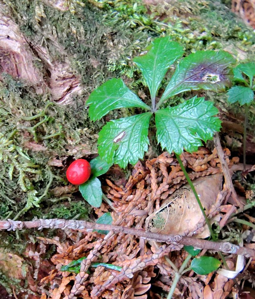 ①②バイカオウレンのそばで、小さな赤い実を見つけました💕🌿