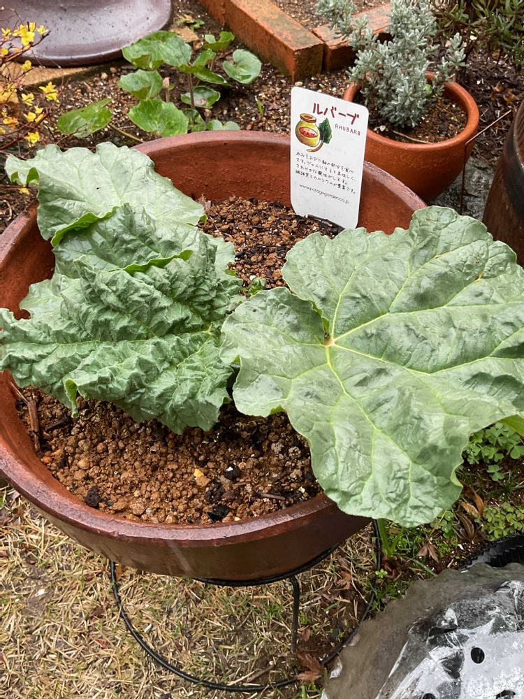 元気に 出て来ましたが、鉢植え🪴では ルバーブ、どのぐらい育つやら..... ジャムなんて 出来るほどは