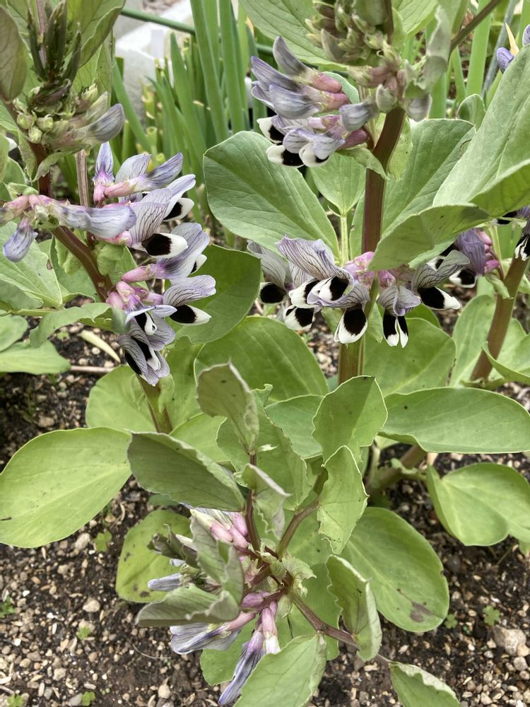 そら豆の花がたくさん咲いています。
