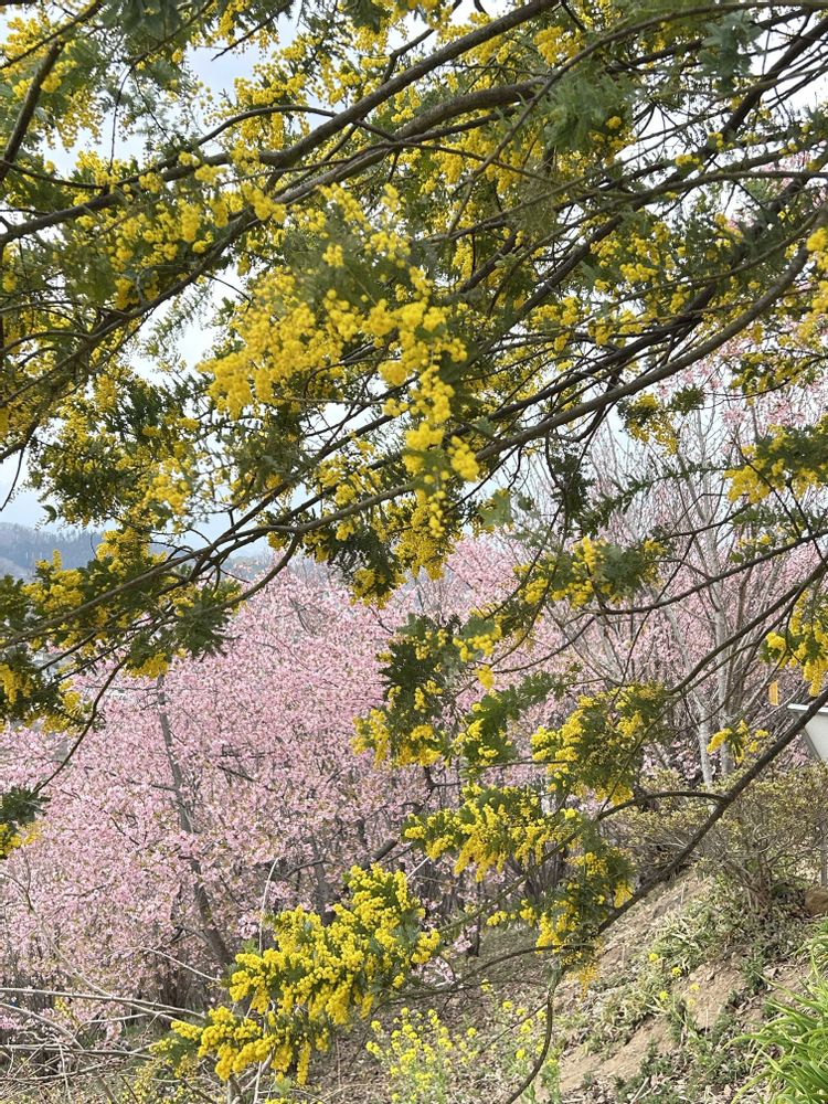 2.ミモザと満開の河津桜🌼🌸