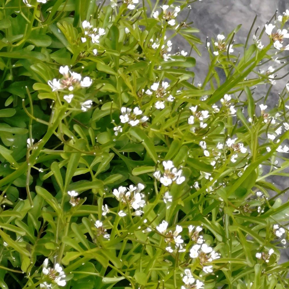 ナズナに似た様な花が水の中に生えててビックリ〜調べたらタネツケバナってありました〜雑草の花もこうやって見たら可愛いよね~(庭に広がって欲しくは無いけど🤭🤣)