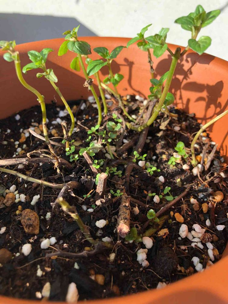 根元にいる小さな子たちはミントの子なのか、雑草なのか、?