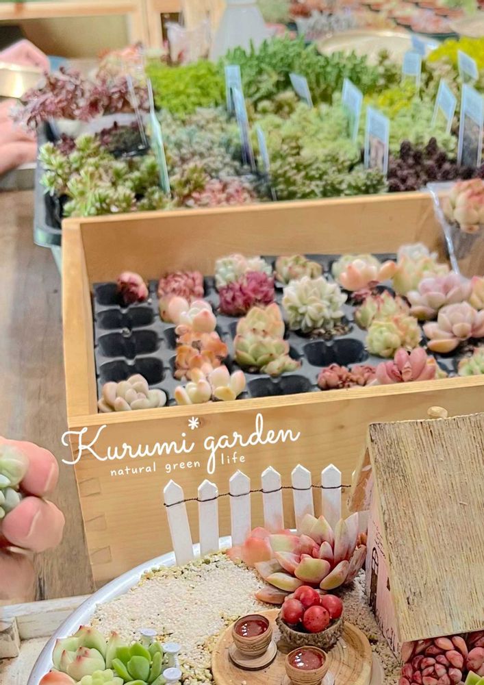 💛4/12(日)東京浅草橋にて ワークショップ ¥4000 ミニチュア写真の世界展2026in東京 ※木の実のカート、看板作ります。 芝生の地面のオマケ付 ※下のリンク⑥から4/12の日付と時間を選んで予約できます。 💛5/3(日) 東京浅草橋にて ワークショップ ¥7500 ミニチュア写真の世界展2026 in東京 ※ガラスのティーポットのガーデン作ります(湖やガーデンテーブルセットつき) ※下のリンク⑥から5/3の日付と時間を選んで予約できます。 🩷くるみガーデンミュージアムin横浜 (JR京浜東北線 根岸駅) ※入場料1000(お茶とお菓子付) 植物や作品の見学、お買い物やワークショップできます。 完全予約制(住所非公開) ※InstagramのDM、くるみガーデンのメール(kurumi_garden@outlook.jp)からミュージアムの予約出来ます ※定員1〜4名まで 以前くるみガーデンのワークショップでやったものと同じ作品はSNSの写真などから選んでいただき、それと同じような作品を作ることも出来ます ワークショップなので 🔰さんでももちろん大丈夫です♡ ワークショップ(小物ピック、材料費込) サボテン手のひらガーデン4000 木馬サボテンの寄せ植え6000 パウンドケーキの箱庭(M)6000 丸いケーキ型の箱庭(L) 10000 多肉のエンゼルケーキの箱庭(L)12000 森の大きな木の食器棚作り 12000 (初回のみ+1000材料費かかります) 🔴2024.4 フジテレビ めざましテレビ 『キラビト』出演 📕出版書籍 主婦の友社より 『多肉植物とドライフラワーのミニチュアガーデン』(第3刷) くるみガーデン くるみ* ※くるみガーデン•オンラインショップではサイン本の購入ができ、オリジナルしおり🔖のオマケ付き❣️ 🔴YouTube 、X(Twitter)、Instagramやってます 登録してもらえると嬉しいです😊 🔴『くるみガーデン』オンラインショップでは、サボテン、用土、お家、小物、ピック、寄せ植え、など購入できます 🔴Instagram、on-lineShop、WS ↓↓↓↓↓↓↓↓↓